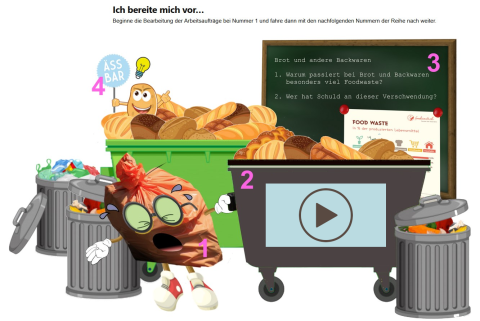 UnterrichtssequenzAuch bei der Nachbereitung taucht Küdi, der fröhliche Abfallsack wieder auf. Die Lernenden bearbeiten die vier vorhandenen Arbeitsaufträge selbständig. Die Aufgaben sind auf einer interaktiven Plattform zu finden und sollen dazu dienen, das Erlernte aus dem Besuch in der Äss-Bar zu festigen. Ein Teil der Ergebnissicherung erfolgt im Dossier für Lernende.