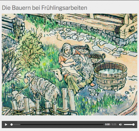 interaktives BildLernende können dieses interaktive Bild selbstständig erkunden und erfahren dabei viel Wissenswertes über das Alltagsleben im Mittelalter. Die einzelnen Szenen können angeklickt und die Erklärungen und Dialoge angehört werden. Benötigt wird ein Laptop oder Tablet mit Internetverbindung und Kopfhörer.