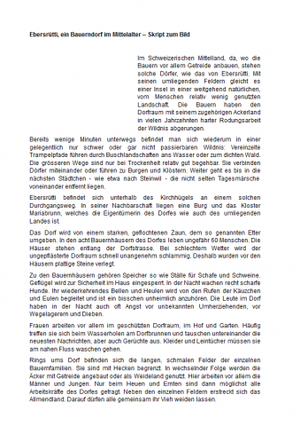Medienkiste und DokumentDer Kommentar für Lehrpersonen liefert Hintergrundinformationen zum Bild und zu den Erzählungen. Weiter sind dort Querverweise zu den Bildern, Erzählungen und Objekten aus der Mittelalterkiste zu finden. Die entsprechende Kiste wurde in Kooperation mit dem Archäologischen Dienst des Kantons Bern erstellt und kann in der Mediothek ausgeliehen werden.
