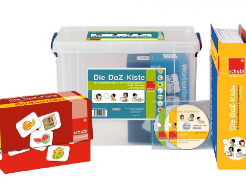 MedienpaketDas Materialpaket eröffnet Lernenden mit keinen oder nicht gesicherten Deutschkenntnissen systematisch Zugänge zur mündlichen wie zur schriftlichen Kommunikation und führt sie schrittweise zum erfolgreichen Spracherwerb. Ein reiches Angebot hochwertiger Bild- und Wortkarten dient dem Aufbau eines Grundwortschatzes in 14 Themenfeldern, liefert anschaulich Begriffszuordnungen und verdeutlicht Satzstrukturen. Darauf abgestimmt ist der Unterrichtsordner mit Arbeitsblättern in 10 Niveaustufen, der es der Lehrperson ermöglicht, für jede*n Lernende*n gezielt Aufgaben auszuwählen. Egal ob ein Kind noch Anlaute übt und ein anderes bereits kurze Texte erliest - beide können am gleichen Thema (z. B. Schule) und doch entsprechend ihres jeweiligen Lernstandes arbeiten. (Quelle: Verlag)