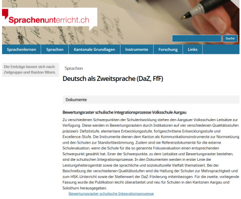 WebsiteDie Webseite enthält eine Sammlung von Leitfäden und Konzepten zu „Deutsch als Zweitsprache" in verschiedenen Kantonen der Schweiz, welche darlegen, wie mit Sprachenvielfalt und Migration im Unterricht umgegangen werden kann.