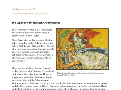 Die Lernenden erfahren mehr über die Legende des Christophorus und setzen sich mit einer modernen Interpretation des Christophorus auseinander.