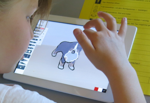 AufgabeEin gewähltes Plastiktier wird von den Lernenden ins Minifotostudio gestellt und mit dem Tablet fotografiert. Danach wird mit Hilfe einer Zeichen-App ein Abbild erstellt.
