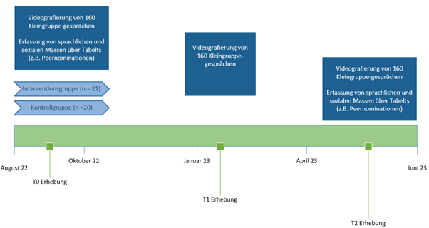 In der SKiLL-Studie wurden 41 Klassen zufällig einer Interventionsgruppe (IG) oder der Kontrollgruppe (KG) zugewiesen. Kinder und Lehrpersonen der IG erhielten an zwei Nachmittagen eine Schulung, in der sie lernten, wie sie schülerzentrierte Gespräche unterstützen können. Lehrpersonen, die der KG zugeteilt wurden, führten ihren Deutschunterricht wie gewohnt fort.
