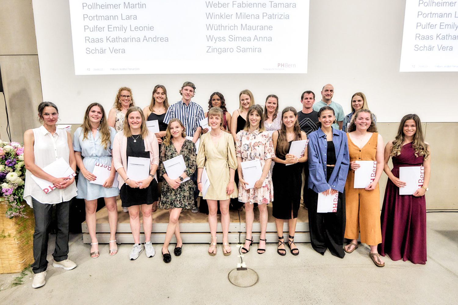 68 Diplomandinnen und Diplomanden erhielten am 20. Mai 2022 das Bachelordiplom für die Primarstufe. 55 von ihnen haben am Institut Primarstufe der PHBern studiert, 13 am privaten, der PHBern angegliederten Hochschulinstitut IVP NMS. Erstmals wurde am Institut Primarstufe fünf Personen die Bescheinigung «Primarstufe+» überreicht. Das Plus steht für eine Spezialisierung in schulischer Heilpädagogik. Diese Lehrpersonen hatten sich während dem Verfassen ihrer Bachelorarbeit und in einem zusätzlichen Semester nach dem Studium vertieft mit heilpädagogischen Fragen auseinandergesetzt.