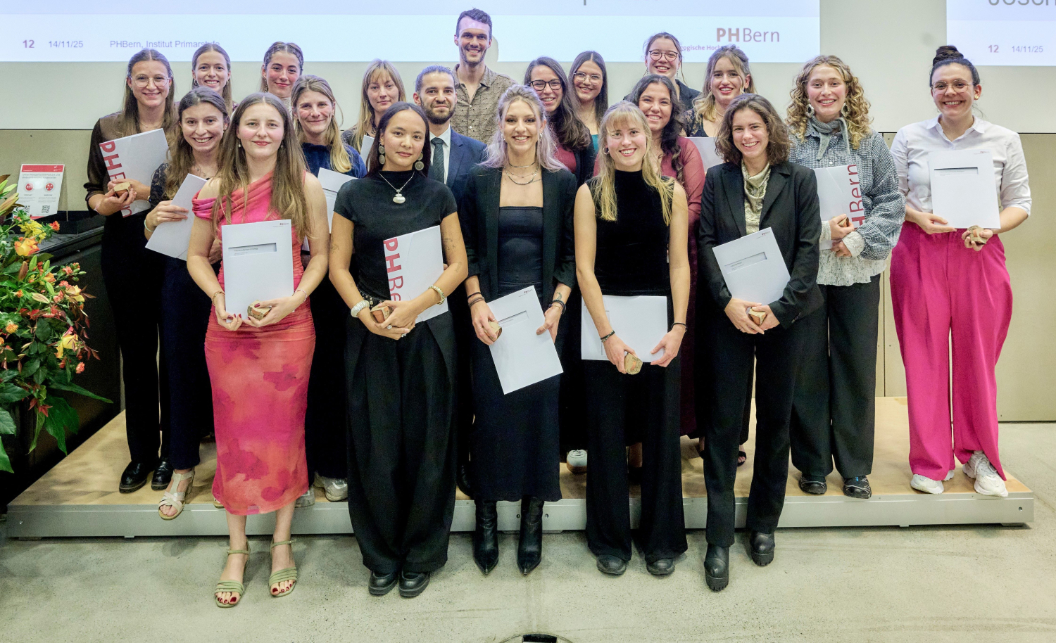 Markus Wilhelm (PH Luzern), der den Studiengang gemeinsam mit Katharina Kalcsics von der PHBern leitet, rief die Diplomierten dazu auf, ihren Elan auf dem weiteren Berufsweg mitzunehmen. "Wir wünschen euch, dass ihr euren Biss behaltet – also den Mut, Dinge neu zu denken, Fragen zu stellen und Wege zu gehen, die es vielleicht noch gar nicht gibt." Und Kalcsics sagte: "Ihr nehmt das mit, was ihr hier erarbeitet habt, und formt daraus etwas Eigenes: Unterricht, Projekte, Forschung, Engagement in Schulen, Institutionen und Hochschule."