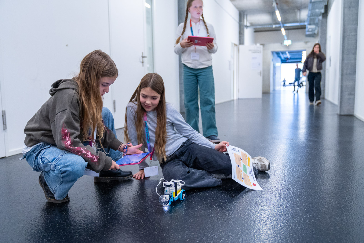 Die Mädchen vertieften sich in die Welt der Technik und entdeckten, wie kreativ Programmieren sein kann! Sie steuerten einen fahrenden Roboter, liessen ihn farbige Muster zeichnen und erzeugten leuchtende Wegspuren, die sie mit der Kamera festhielten. Dabei konnten sie ausprobieren, wie spannend technische Berufe sind – und dass Mädchen und Technik perfekt zusammenpassen.