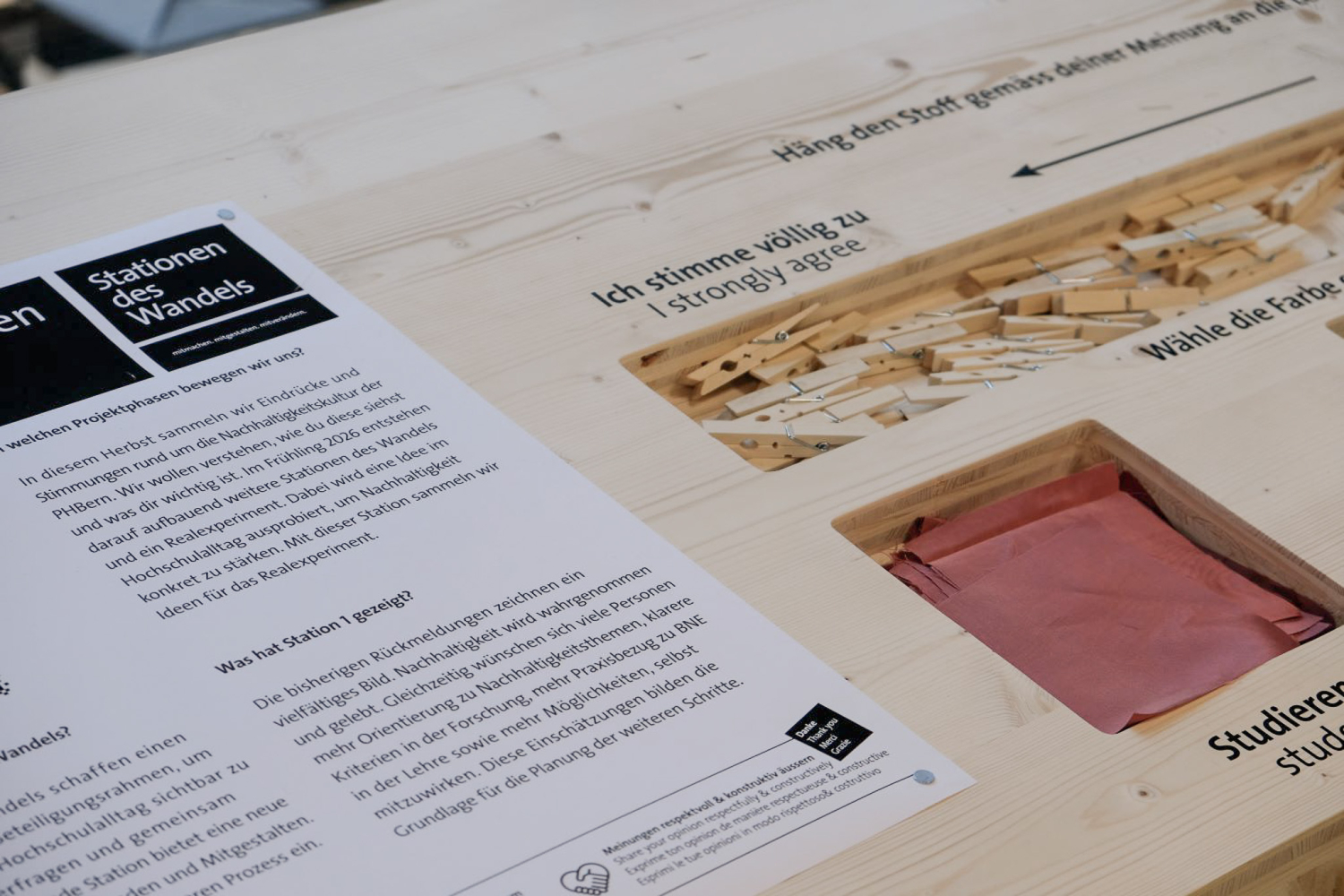Mit der ersten Station des Wandels ging es darum zu verstehen, welche Bedeutung Nachhaltigkeit für unterschiedliche Personen an der PHBern hat. Die Erkenntnisse aus der ersten Station bilden das Fundament für die Gestaltung der weiteren Stationen. Es bleibt also spannend, wie sich der Wandel fortsetzt – und wie die nächsten Stationen aussehen werden.
